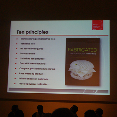 3D printing technology was initially discussed, along with the scope of the various techniques for rapid prototyping, creation of bespoke products, and those which required no post-printing assembly. To illustrate, we saw the running shoes that were made made by scanning the athlete's feet and printing the bespoke shoes to match their exact size and shape. Other examples were pair of sunglasses that required no assembly post printing, as well as a 3D printed dress. 3D photocopiers were also discussed in terms of their current capabilities.