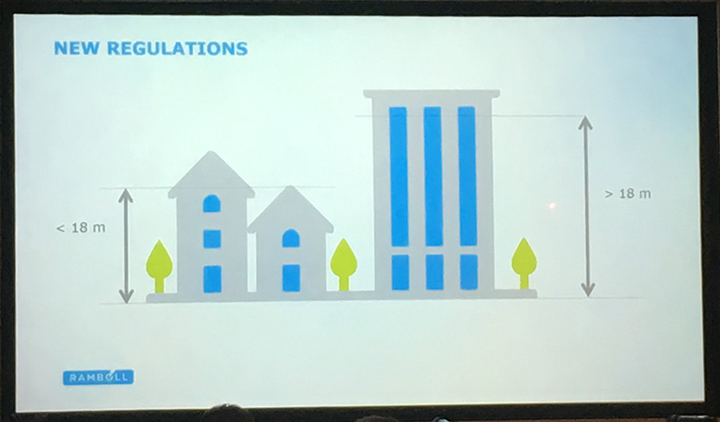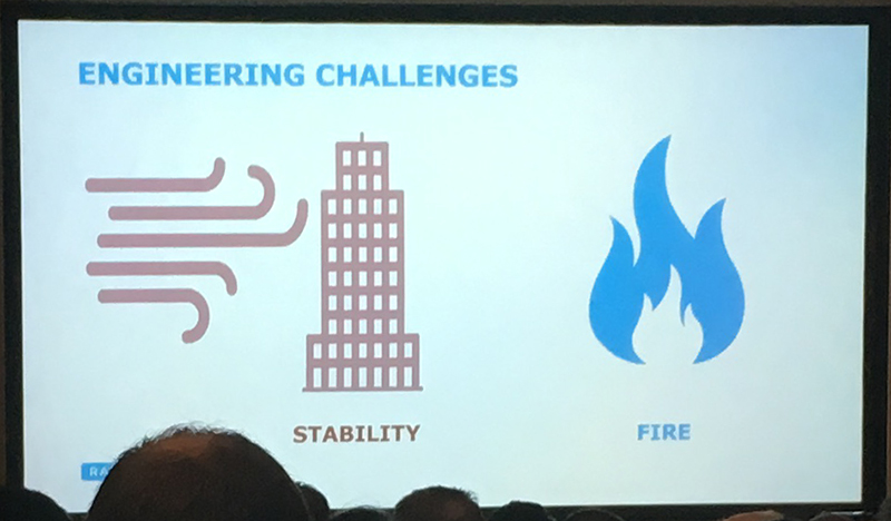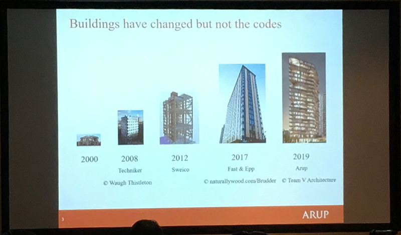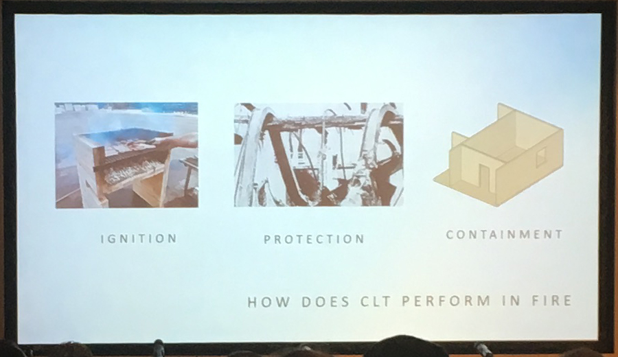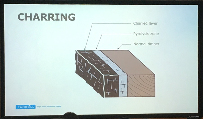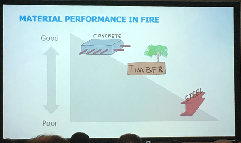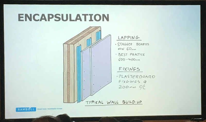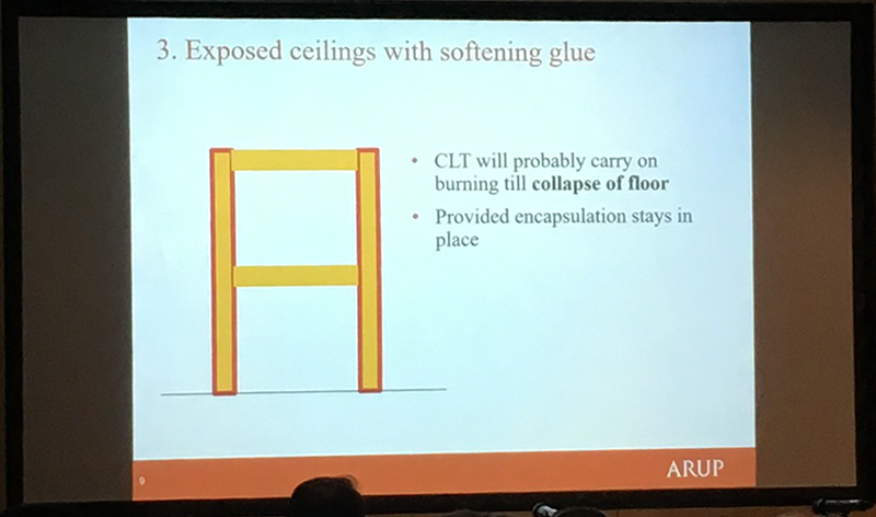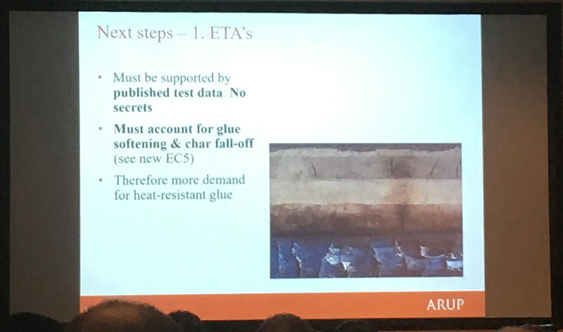 Andrew Lawrence from Arup discussed fire resistance concerns for buildings constructed using CLT. He emphasised in particular the need to carry out rigorous tests on this relatively new technology and that threats to safety become greater as buildings become taller. He addressed the need to update the current standards and building regulations that were written at a time when more traditional building methods were dominant.