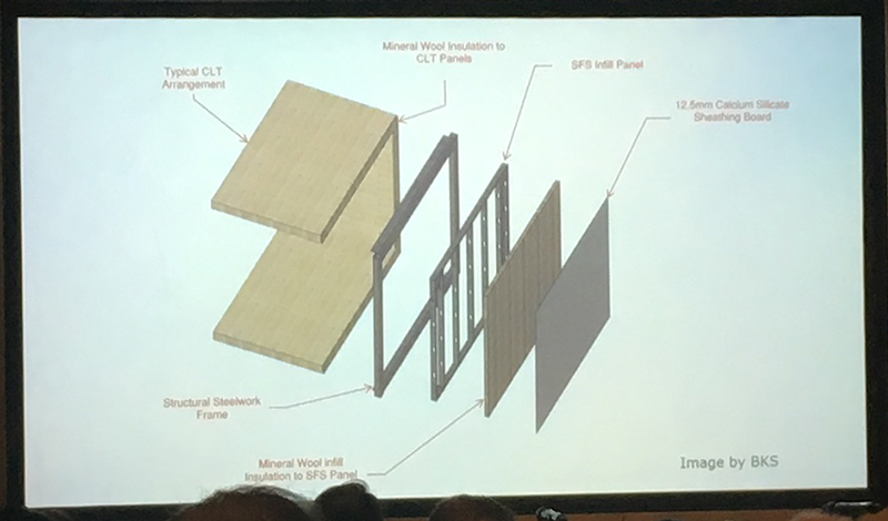 Alan Dowdall discussed some of the practical structural challenges associated with CLT buildings, namely stability and fire protection.