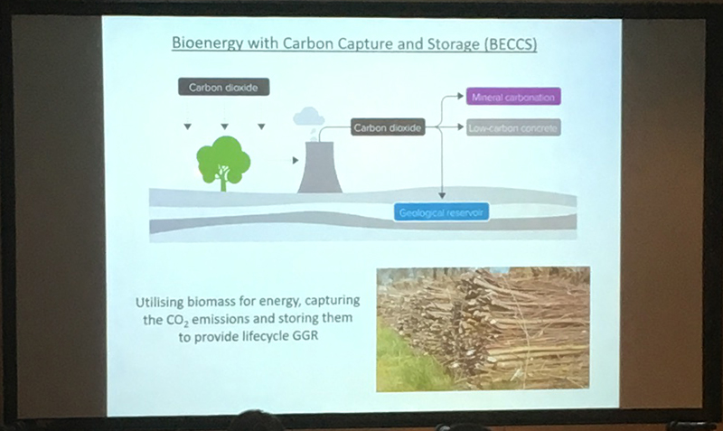 We looked at GGR methods, taking a particularly close look at BECCS (Bioenergy with Carbon Capture and Storage). This is a major contributor of GGR and particularly relevant to the building industry since timber is a form of biomass which can capture and store the carbon. This process happens during photosynthesis, where a trees's leaves absorb light energy and carbon dioxide, which then remains intergral to the tree without being re released back into the atmosphere. This therefore constitues a negative emissions technology, or in other words the process removes carbon from the atmosphere and stores it long term within the timber.