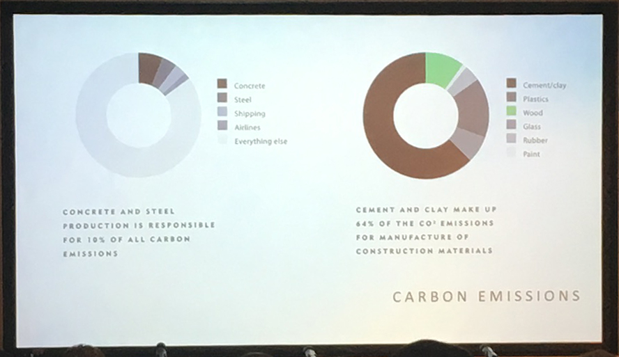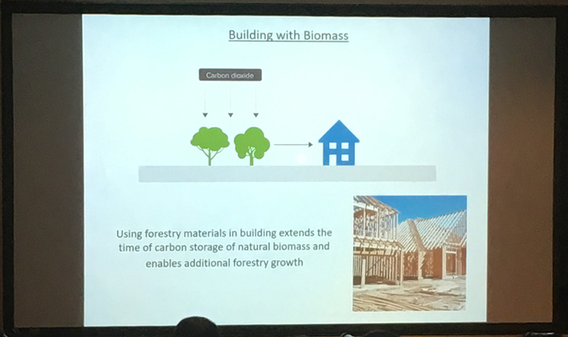 We were presented with the facts on carbon emissions generated by production of traditional non-timber building materials. Concrete and steel production is responsible for 10% of all carbon emissions.