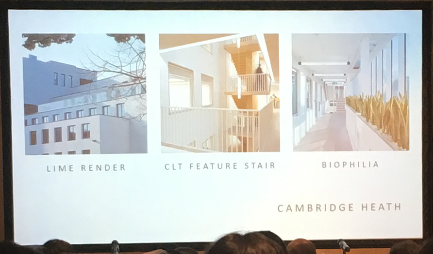 Using Cambridge Heath as a case study, we looked at some of the features of recent CLT buildings. This included example types of render, using exposed CLT to create features within the building and the trend for biophillia in buildings.