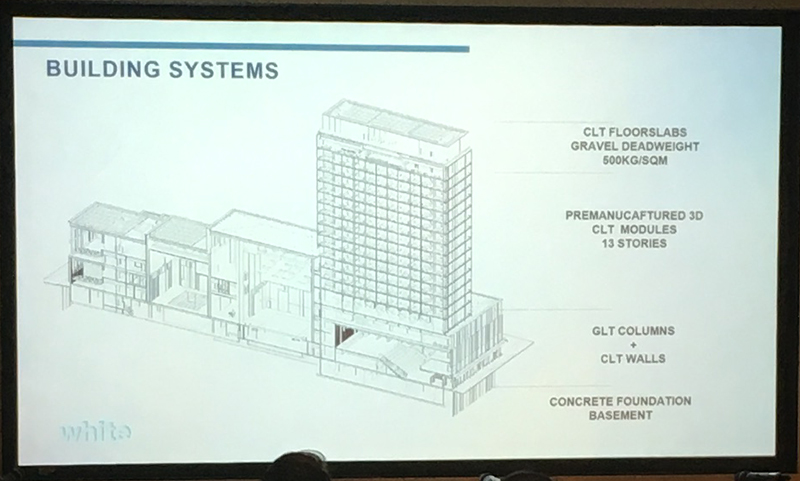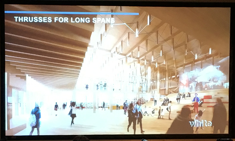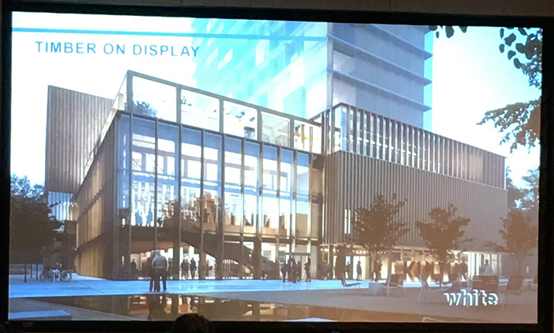 Lead project architect Robert Schmitz presented the plans for the centre, which demonstrated the scope of engineered timber technology at its current stage of development.
